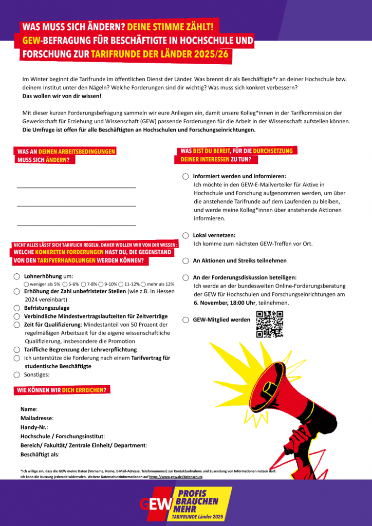 Aktiv werden für bessere Arbeitsbedingungen in der Wissenschaft — Mit uns in die Tarifrunde 2025/26
