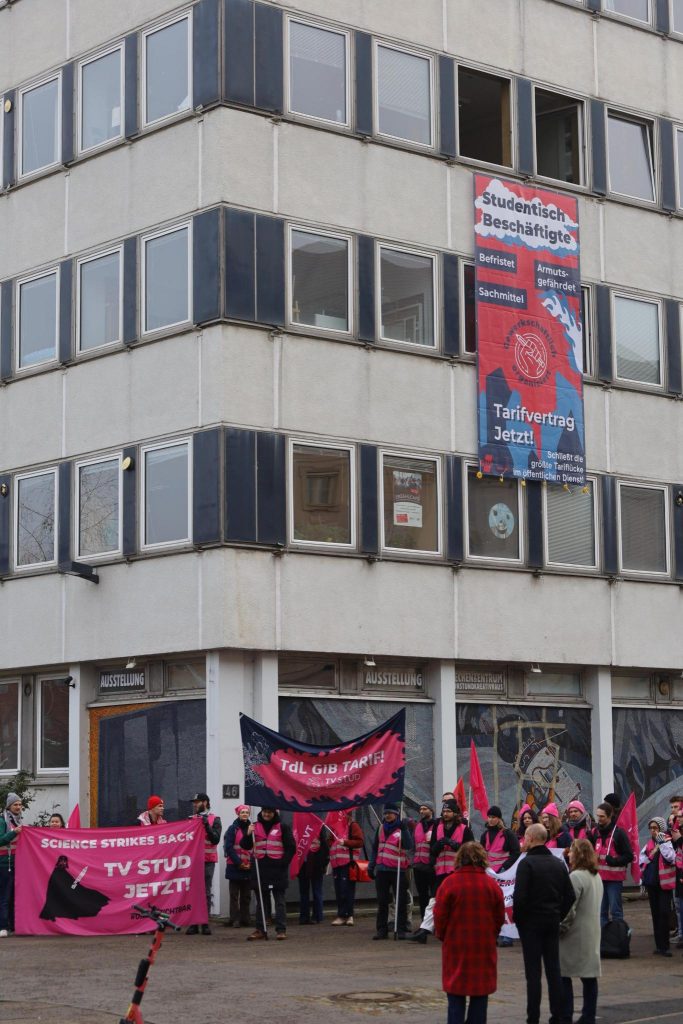 Kurz um: Wir Studentische Beschäftigte sorgen mit dafür, dass der Laden überhaupt läuft. Auch wir haben das Recht auf gute Arbeitsbedingungen und tarifliche Absicherung – ohne Ausnahme!